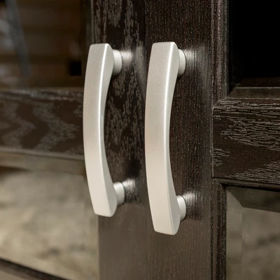 Utilize your corner space with this 44″ media console, its corner design makes this the perfect space saving unit. Features ample media storage and two double doors with tempered safety glass panes. Crafted from high-grade MDF and durable laminate to accommodate TVs up to 50″.