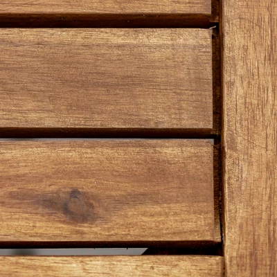 Treat yourself to a cozy picnic with Saracina Home’s Extendable Patio Table Dining Set. Enjoy a shady oasis as the grooved tabletop comes with an umbrella hole. Its calm, coastal design is great for global and boho trends. And with room to seat four to six people on this extendable table, imagine all the fun garden parties or tea-time brunches you could host. Its acacia wood frame is weather-resistant, so rest easy knowing this cute, outdoor dining set is in for the long haul. Apply occasional teak oil to keep wood looking vibrant. Properly care for your outdoor acacia furniture by applying teak oil every 2-3 months and keeping it out of severe weather conditions.